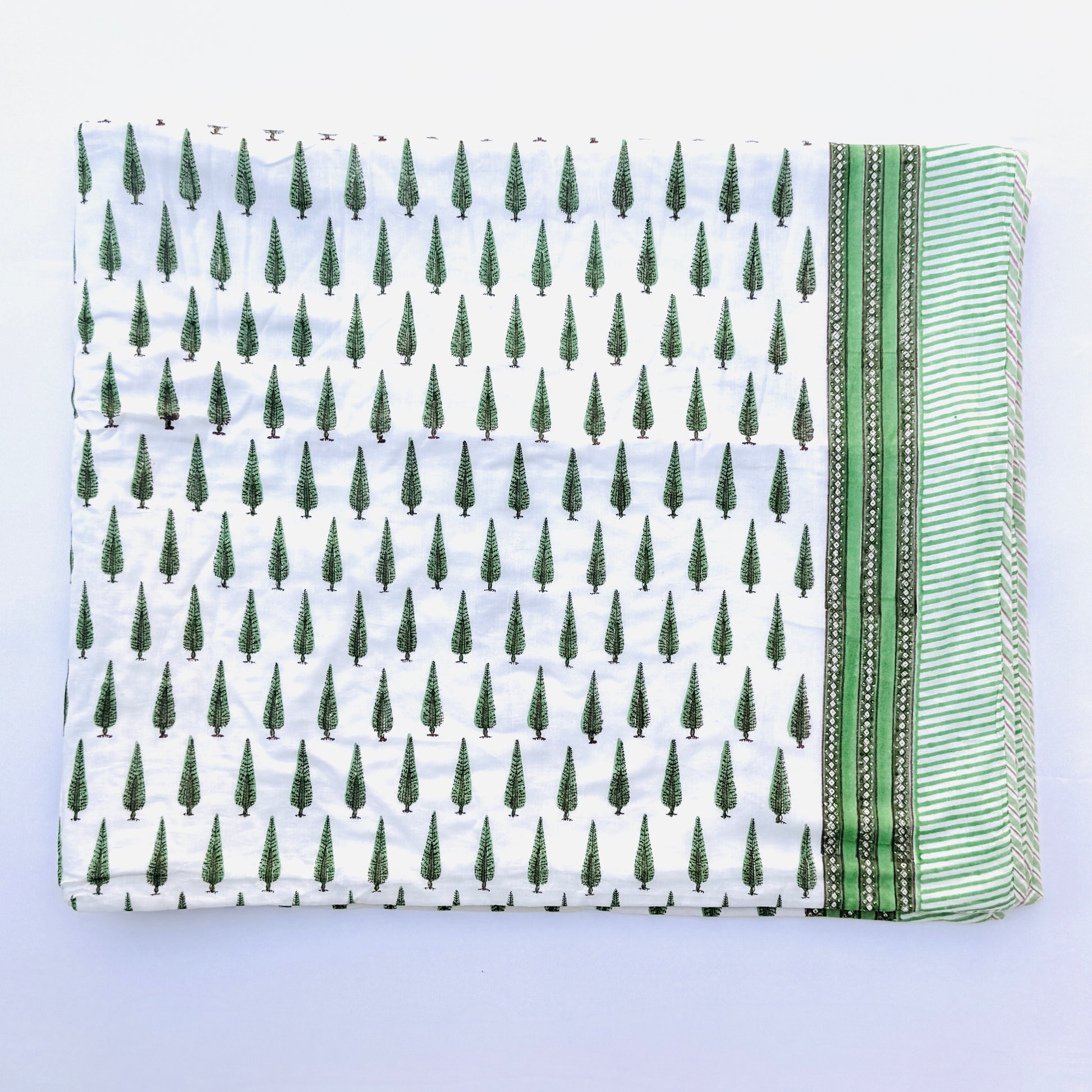 Add festive charm to your space with our reversible, 100% cotton blanket featuring a cheerful Christmas tree block print. Lightweight and breathable, it’s perfect for both indoor and outdoor use - from cozy corners to picnics, beach days, car rides, daycare naps, or stroller strolls. Stylish, soft, and easy to carry, it’s a versatile must-have and makes a delightful gift for toddlers this holiday season!